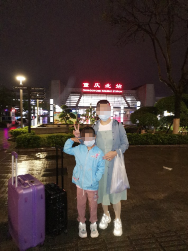 ▲ 小麗母女在重慶北站廣場合影